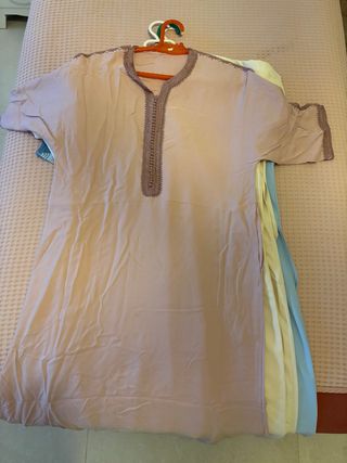 Conjunto de abayas para niños. Diseños cómodos y elegantes. - Tallas disponibles: 8 años, 10 años. - Color: Rosa pálido. - Detalle bordado en cuello y mangas.