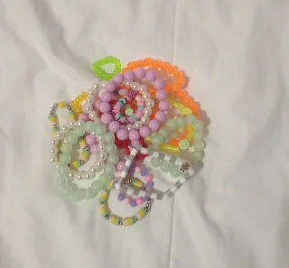Conjunto de 15 pulseras y 2 anillos hechos a mano. - Diseños coloridos y variados. - Ideal para niños y niñas.