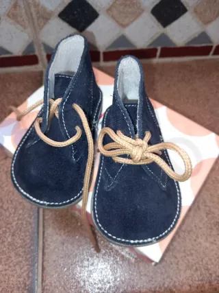 Preciosos zapatos de bebé de ante azul marino, perfectos para los primeros pasos. Número 16 - Cierre con cordones. - Costuras blancas decorativas. - Interior forrado para mayor comodidad.