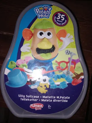 Set de Mr. Potato Head Silly Suitcase con 35 piezas para crear divertidas combinaciones. Incluye accesorios. - Maleta de transporte. - 35 piezas para Mr. Potato Head. - Marca Playskool Friends.
