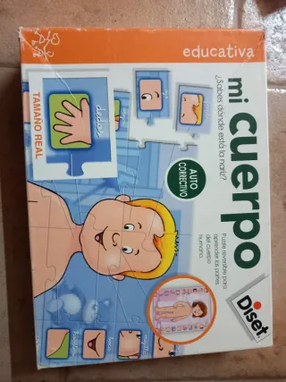 Puzzle educativo de Diset para aprender las partes del cuerpo humano. Es reversible y tiene auto-corrección. - Incluye piezas para identificar dedos, oreja, ojo, frente, mejilla, boca y hombro. - Ilustración a tamaño real de una mano. - Fomenta el aprendizaje interactivo.