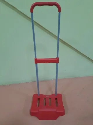 Carro portamochilas con estructura plegable y base roja. - Mangos ergonómicos. - Base con ranuras. - Barras de soporte.