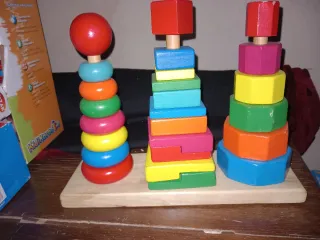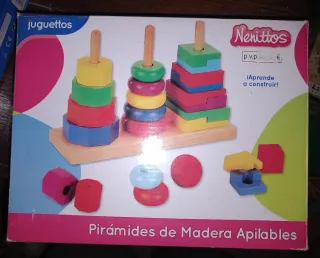 Set de juegos de madera para el desarrollo temprano. - Incluye apilables de diferentes formas y colores. - Material de madera resistente y seguro. - Diseños educativos para estimular la motricidad.