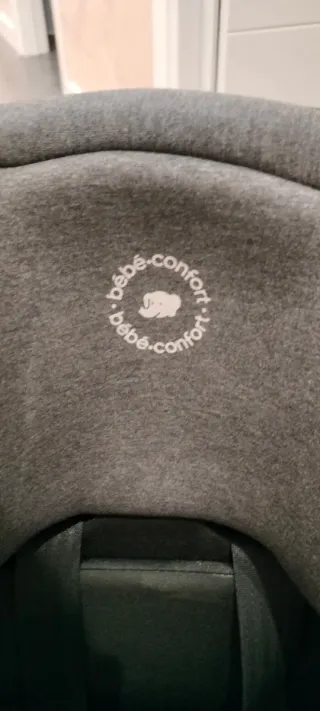 Silla de coche de la marca Bébé Confort, en color gris oscuro. - Diseño moderno y acolchado. - Incluye detalles en gris claro. - Base negra.