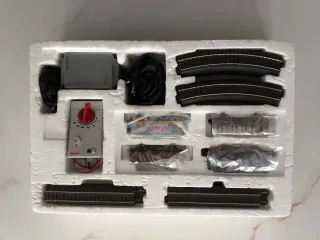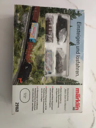 Pack de inicio Mein Start mit Märklin de Märklin HO. Con luz en sentido de la marcha. - Locomotora potente con carcasa metálica y decoder digital. - 3 vagones - Unidad de control digital y transformador de 18 VA para operar hasta 4 trenes simultáneamente. - Vía C con base de balasto detallada y resistente, para un montaje y desmontaje rápido.