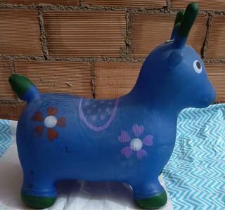 Divertido reno de goma inflable, ideal para que los más pequeños jueguen y se diviertan. - Color azul vibrante. - Decorado con flores en tonos naranja y morado. - Orejas y cola en color verde.