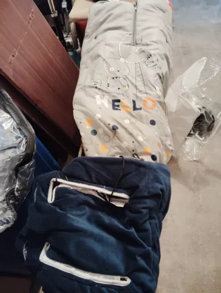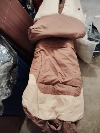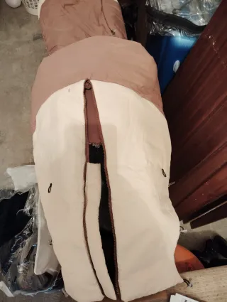 Saco para carrito de bebé en color beige y marrón. Mantiene al bebé abrigado y cómodo. - Cremallera frontal. - Capucha ajustable.