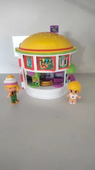 Juego de Pin y Pon con temática de hamburguesería. - Incluye dos figuras. - Estructura de juego con detalles de comida rápida.