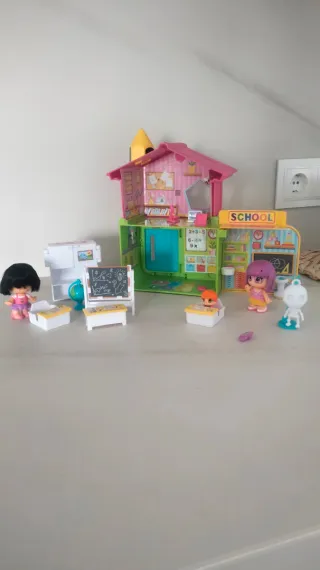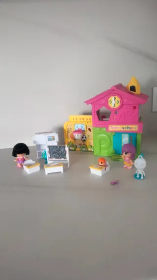 Set de juego de la escuela Pin y Pon, ideal para recrear divertidas escenas. - Incluye la estructura de la escuela. - Varios muñecos Pin y Pon. - Accesorios como pupitres y pizarra.