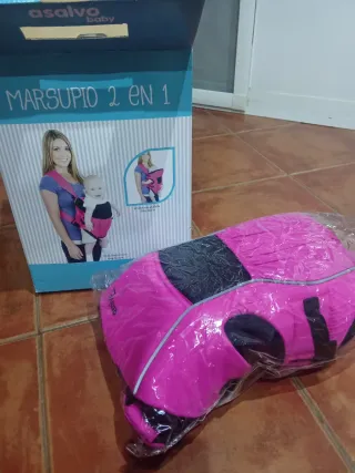 Mochila portabebés Asalvo, modelo Marsupio 2 en 1. - Color rosa y negro. - Diseño ergonómico para el bebé y el portador. - Ideal para llevar al bebé cómodamente. - Sin estrenar