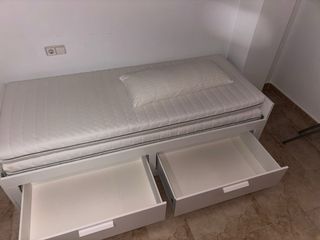 Se vende cama de 80/90 y se convierte en cama de 1.80/1.90 con dos cajoneras extraibles Incluye: -Tapiflex -2 colchones sin estrenar - 1 almohada sin estrenar Se encuentra todo sin estrenar, en perfecto estaso