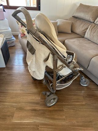 Silla de paseo de la marca Bebecar. - Diseño moderno y funcional. - Capota amplia para proteger del sol. - Chasis resistente y ligero. - Ruedas delanteras giratorias para mayor maniobrabilidad. Tiene el espaldar roto que no baja. Se podria arreglar