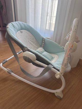 Silla infantil con un diseño moderno y cómodo. - Incluye música y vibración para el entretenimiento del bebé. - Estructura resistente y segura. - Tejido suave y acolchado. En muy buen estado. Muy poco uso Tiene música y vibración por separado Se puede balancear o ponerle las patas para que esté quieto. Ideal para los primeros meses del bebé. Se puede utilizar desde 0 meses hasta 9 kilos Su precio fue de 109€
