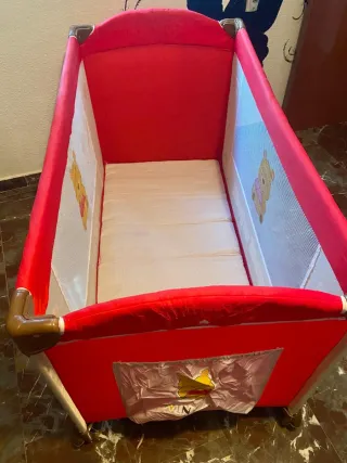 Parque infantil con diseño de Winnie the Pooh. - Estructura con laterales de malla. - Decorado con mariposas y personajes de Winnie the Pooh. - Incluye ruedas para facilitar su movilidad. Largo-125cm Ancho-65cm Alto-80cm