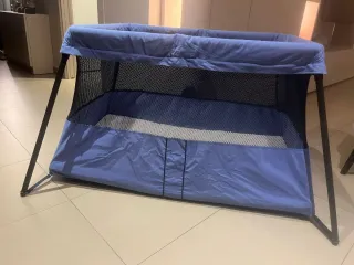 Minicuna Babybjorn en perfecto estado. Es ligera y fácil de montar, ideal para viajes o para tenerla en casa como cama supletoria. - Color gris claro. - Estructura de aluminio. - Tejido de malla transpirable. - Incluye colchón.