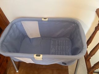 Minicuna colecho de la marca Chicco. Diseñada para facilitar el descanso compartido. - Estructura metálica. - Laterales de malla transpirable. - Ruedas para facilitar su movilidad y ajustables -Se puede inclinar por si tienen congestión nasal -ajustable de altura en los botones laterales -Se puede poner para que tenga balanceo también -colchón y sabanas que regalo incluidas