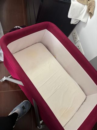 Minicuna multifunción con las siguientes características: - Pies retráctiles - Una ventana de tejido transparente para observar al bebé - Seis alturas ajustables entre ellas una posición extra baja muy cómoda para vigilar al bebé desde el sofá - Múltiples combinaciones para inclinarla, esto es especialmente útil para los bebés que sufren reflujo - Sistema balancín que se activa y desactiva con un clic Incluye colchón, ropa de cama original, protector colchón y bajera extra OPCIONAL: kit colecho cama matrimonio 15€ (original cuesta 50€ en kitcolecho.com)