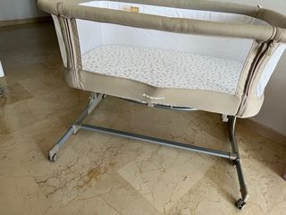 Minicuna de Chicco cuyo objetivo fundamental es favorecer el colecho y permitir a los papás dormir más cerca de su bebé. La minicuna puede estar separada de forma progresiva de la cama de los padres y ser usada posteriormente como una minicuna normal. Está homologada para bebés de 0 a 6 meses, hasta un máximo de 9 kgs. Muy poco uso (apenas 6 meses). En su caja original y con todos los accesorios. Estado fenomenal.