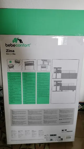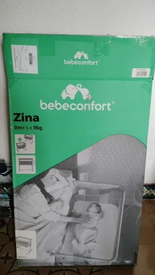 Minicuna de colecho Bebeconfort Zina, sin usar. - Apta desde 0 meses hasta 9 kg. - Diseño moderno y funcional. - 2 en 1: cama de colecho y cuna independiente - 5 ajustes de altura - Ajuste horizontal con patas retráctiles - Funda de colchón lavable - Plegado compacto - Colchón acolchado - Posición de reflujo - Malla transpirable en todo el contorno - 2 correas incluidas para fijar la cuna