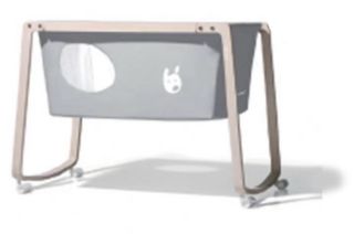 Minicuna con estructura plegable y ruedas para facilitar su movilidad. - Tejido resistente de color beige. - Patas metálicas blancas. #minicuna