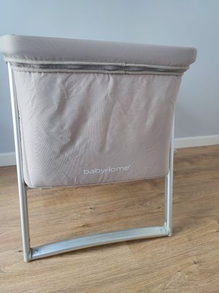 Minicuna BabyHome en perfecto estado. Ideal para los primeros meses del bebé. - Estructura ligera y fácil de montar. Con ruedas y balancín y también puede estar estática. - Tejido transpirable y acolchado. - Incluye bolsillos laterales para guardar objetos pequeños.