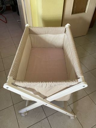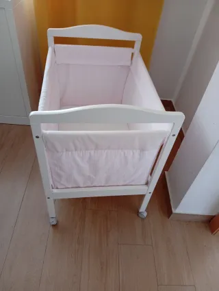 Minicuna para bebé con muy poco uso, comprada este mismo año. Ideal para las primeras etapas del recién nacido. - COLCHÓN DE REGALO 🎁 - Estructura de madera y blanco. - Ruedas para fácil movilidad. - Posibilidad de hacer colecho. - Confeccionado de Madera natural. 💬 Cualquier duda, pregúntame sin problema!