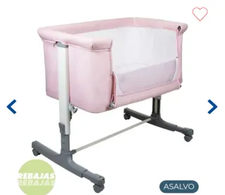 Minicuna de colecho en color rosa, ideal para las primeras etapas del bebé. - Estructura con ruedas para facilitar su movilidad. - Laterales de malla para una buena ventilación. - Diseño moderno y funcional.
