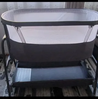Minicuna de colecho de la marca Jane. Es gris con estrellas y tiene un colchón. - Laterales de malla transpirable. - Estructura de metal. - Incluye colchón. REGALO dos juegos de sabanas + dos protectores ademas del edredon y bajera que lleva puesto. REGALO bañera pequeña bebe usada 8 meses en buen estado. REGALO ROPA BEBE NIÑO con la misma compra.