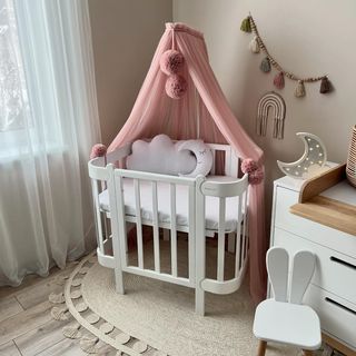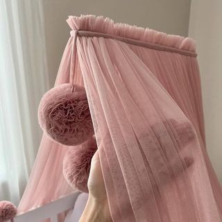 Vendo baldaquín decorativo en color rosa pastel, ideal para cuna o minicuna. Crea un ambiente acogedor y muy bonito en la habitación del bebé. ✨ Incluye: • Baldachín de tul • Pompones decorativos grandes • Sistema de fijación (soporte)