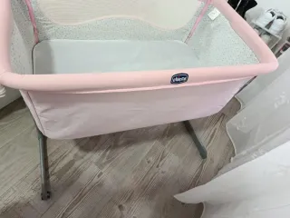 Minicuna cuna colecho Chicco Next to Me en color rosa. Ideal para tener al bebé cerca. MUY BUEN ESTADO SIN USO - Estructura metálica. - Laterales de malla transpirable. - Colchón incluido.