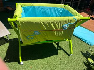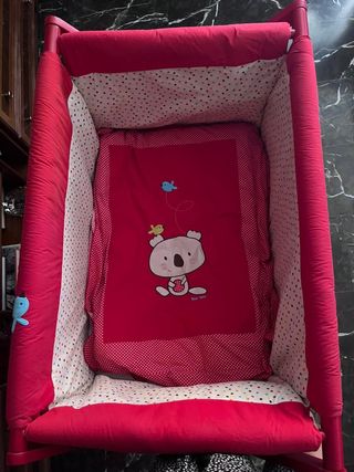 Minicuna marca Tuc Tuc en color rosa. Estructura de montaje muy sencillo. Cuerpo blando de fijación mediante velcros, con tabla base, colchón y red de ventilación superior. Incluye sabana bajera, sabana superior y edredón a juego. Todo en perfecto estado. Empaquetada en caja original. Disponible para entrega en mano en parte de la provincia de Pontevedra o en Santiago de Compostela.