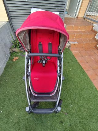 Carro UPPAbaby Vista en buen estado, muy cómodo tanto para los peques como su manejo por los adultos. Capazo homologado como minicuna. Capotas con filtro solar +50 tanto en capazo como en silla. Cesta enorme con dos bolsillos. Incluyen mosquiteras y plásticos de lluvia tanto para el capazo como para la silla. Con los adaptadores (se venden aparte 30 eur) puedes colocar capazo y silla a la vez (o dos capazos, dos sillas...). Las ruedas se quitan muy fácilmente para mantenimiento o transporte. Regalo funda de invierno Tuc Tuc (fotos en mi perfil)