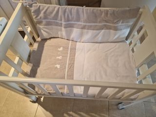 Minicuna con estructura de madera de haya y colchón. Medidas 90X68X66. Medidas del colchón 75X50.