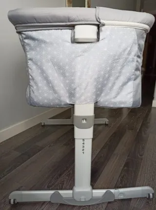 Minicuna Chicco Next2Me Air en color gris, en perfecto estado. Es ideal para tener al bebé cerca durante la noche. - Estructura ligera y fácil de montar. - Tejido transpirable - Sistema de fijación a la cama