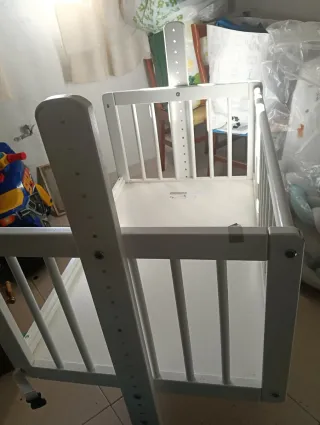 Cuna blanca de madera. Y minicuna modelo continental. Se puede vender por separado. Precios negociables. Venta en persona.