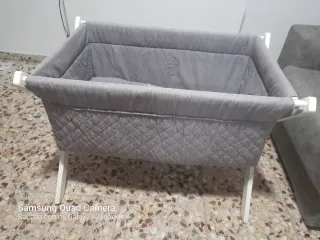 Minicuna de colecho en color gris, ideal para tener al bebé cerca durante la noche. - Diseño moderno y funcional. - Acolchado interior suave. - Estructura metálica resistente. Le falta la esponjita porque estaba sucia