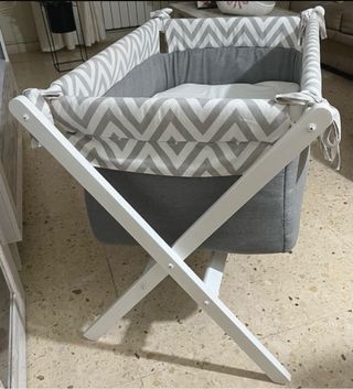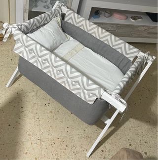Como NUEVO. Preciosa minicuna colecho de Jane, ideal para los primeros 4 a 6 meses del bebé recien nacido. Es perfecta para tener al bebé cerca durante la noche. - Cuna colecho Jane. - Diseño con estrellas grises sobre fondo blanco. - Incluye colchón y textil. usado 2 veces precio original €199