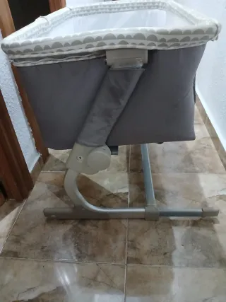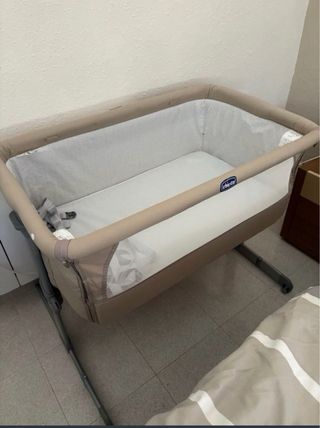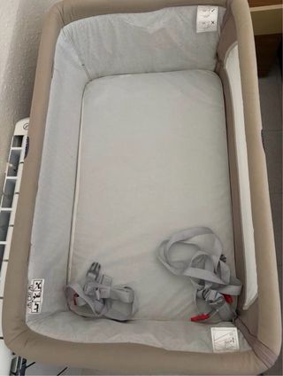 Preciosa minicuna Chicco Next2Me en color gris. Está en muy buen estado y es perfecta para que el bebé duerma cerca de los padres. - Se pliega fácilmente para facilitar su transporte y almacenamiento. - Incluye un lateral de malla para una buena ventilación. - Estructura de metal resistente y estable. Solo tiene una sombra en la parte interna de la cuna debido a que el bebe se apoyaba ahi siempre.