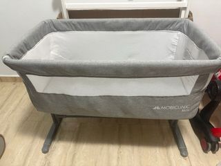 SOLO VENTA EN PERSONA. Minicuna Bebeconfort en perfecto estado. Ideal para los primeros meses de tu bebé. - Estructura ligera y fácil de montar. - Tejido gris, suave y transpirable. - se sube y baja, apto para colecho. - colchon rígido adecuado para bebes recién nacidos y elevable ( cabeza más alta que el cuerpo, lo que syuda en caso de resfriados). La tengo guardada por eso no he subido fotos propias. Se puede ver, está perfecta ya que la usamos los primeros meses de nuestras mellizas