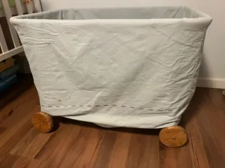 Cuna de bebe, de regalo una sábana con su sábana bajera - Estructura de madera - Ruedas de madera.