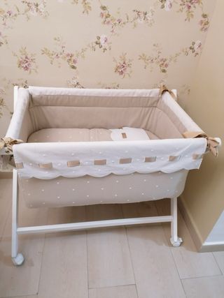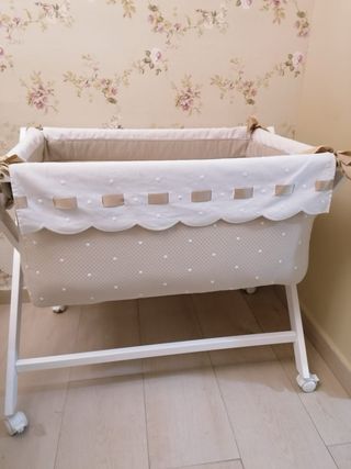 Preciosa minicuna colecho para bebé, ideal para los primeros meses. Está en muy buen estado y es perfecta para tener al bebé cerca durante la noche. - Incluye colchón. - Diseño ligero y fácil de transportar. - Tejidos suaves y delicados.