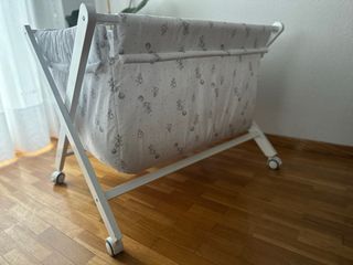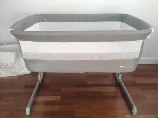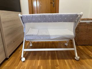 Preciosa minicuna colecho, ideal para los primeros meses del bebé. Está en muy buen estado y es perfecta para tener al bebé cerca durante la noche. - Incluye colchón. - Diseño de estrellas grises. - Tejido suave y acolchado.