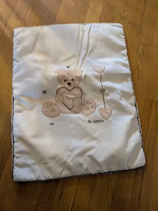 Sabana y almohada. Protector de colchon minicuna