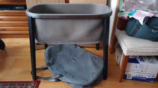 Minicuna Jane de color gris en buen estado. Es perfecta para los primeros meses del bebé. - Estructura ligera y fácil de montar. - Tejido suave y agradable al tacto además es desfundable para lavarla en la lavadora. - Incluye colchón siempre usado con protector está totalmente limpia y desmontada