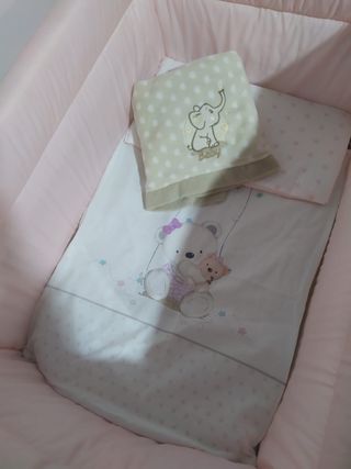 minicuna prácticamente nueva se a usado muy poco se entrega con juego de sábanas de invierno y verano colcha y edredones colchón