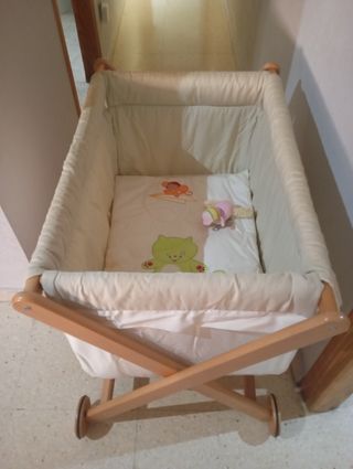 Minicuna de madera y textil