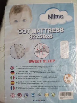 Colchón para minicuna con tratamiento Aloe Vera. Ofrece un descanso confortable. - Medidas: 82x50x6 cm. - Revestimiento con Aloe Vera. - Transpirable y antiácaros. - Fabricado en Italia.