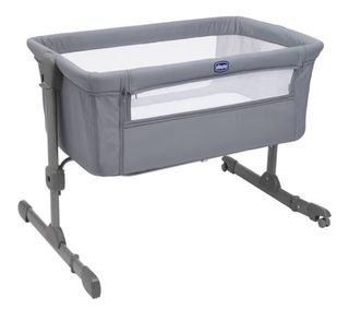Minicuna colecho Chicco Next2Me en color gris. Permite tener al bebé cerca durante la noche. - Laterales de malla transpirable. - Logo de Chicco visible. - Estructura metálica con ruedas.