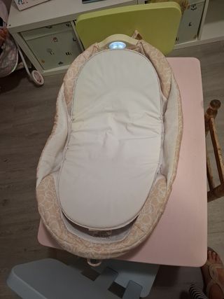 Minicuna-moises Chicco 4 en 1, ideal para los primeros meses del bebé. Su diseño permite adaptarla a diferentes necesidades. - Color rosa. - Incluye capota con juguetes. - Base estable con ruedas. - incluye colchon +0meses - Incluye kit trona +6meses Montado pero mi hija nunca ha querido estar reclinada desde que nació. esta sin estrenar Si es para recoger en mano es en Barcelona. Si no, hago envio a cualquier parte de peninsula