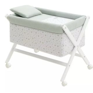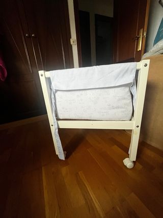 Preciosa minicuna colecho para bebé, ideal para los primeros meses. Está en muy buen estado y apenas se ha usado. - Incluye minicuna, colchón y juego de sábanas con estampado de estrellas. - Estructura ligera y fácil de montar. - Tejidos suaves y transpirables.